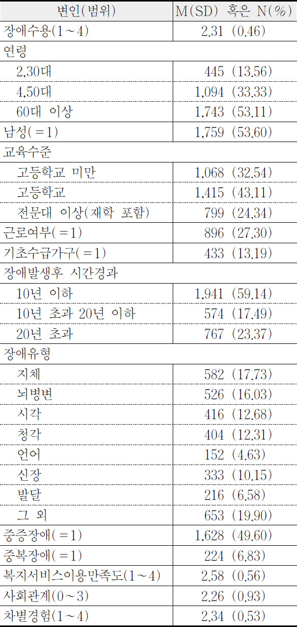 본 연구는 장애인당사자와 가구원의 장애수용 수준의 연관성과 함께 장애인당사자의 장애수용 수준에 영향을 미치는 요인과 가구원이 인식하고 있는 장애인당사자의 장애수용 수준을 설명하는 요인의 유사성과 차이점을 살펴보았다. 이를 위해 장애인삶패널 5차년도(2022년) 자료를 분석에 이용하였으며...